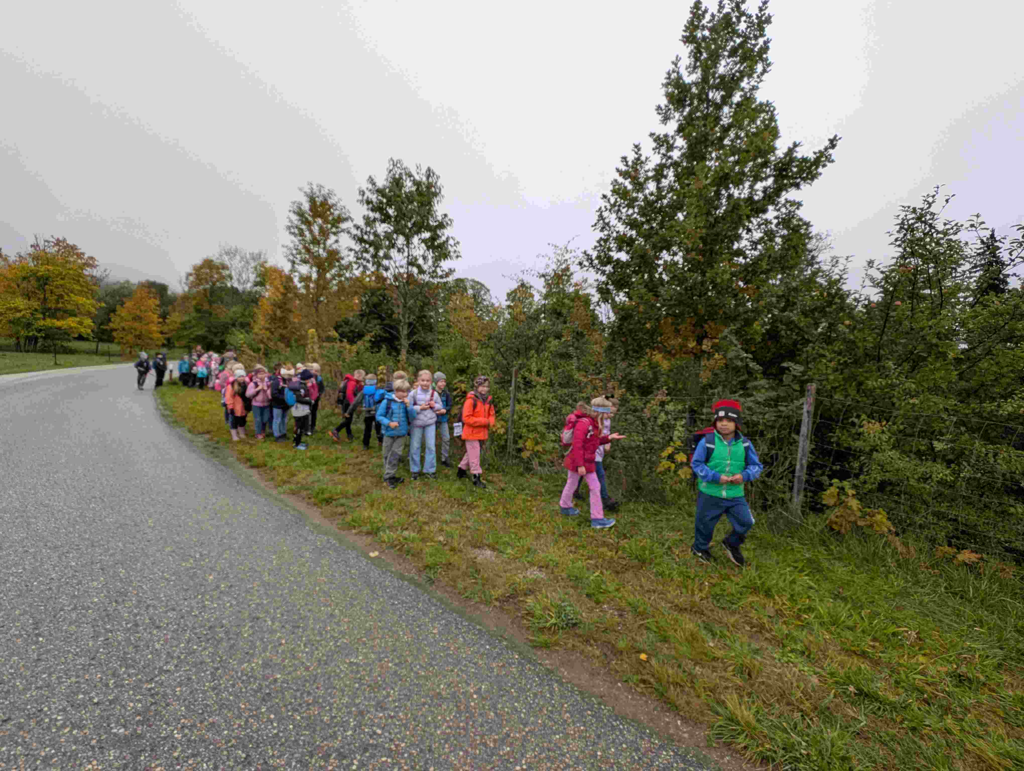Am 10. Oktober fuhren alle 2. Klassen nach Schwärzenbach zu einer besonders abwechslungsreichen Hecke. Dort lernten wir die Heckenrose, den Liguster, die Schlehe, den Weißdorn, die Hasel und das schöne Pfaffenhütchen kennen, welche davon giftig sind und wie man die Früchte verwerten kann. Nach einer Brotzeit ging es dann weiter zum Seeglasspielplatz. Trotz der Nässe spielten wir dort ausgelassen, bis uns um 11 Uhr der Bus wieder zurück zur Schule brachte. Es war ein toller Schultag.